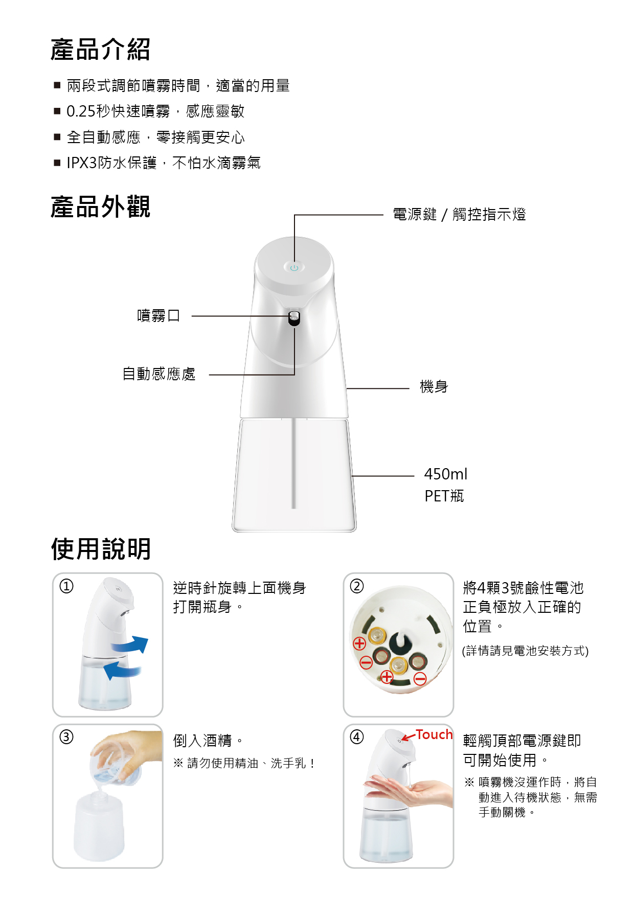 【使用說明書】兩段式自動酒精噴霧機 AS-001