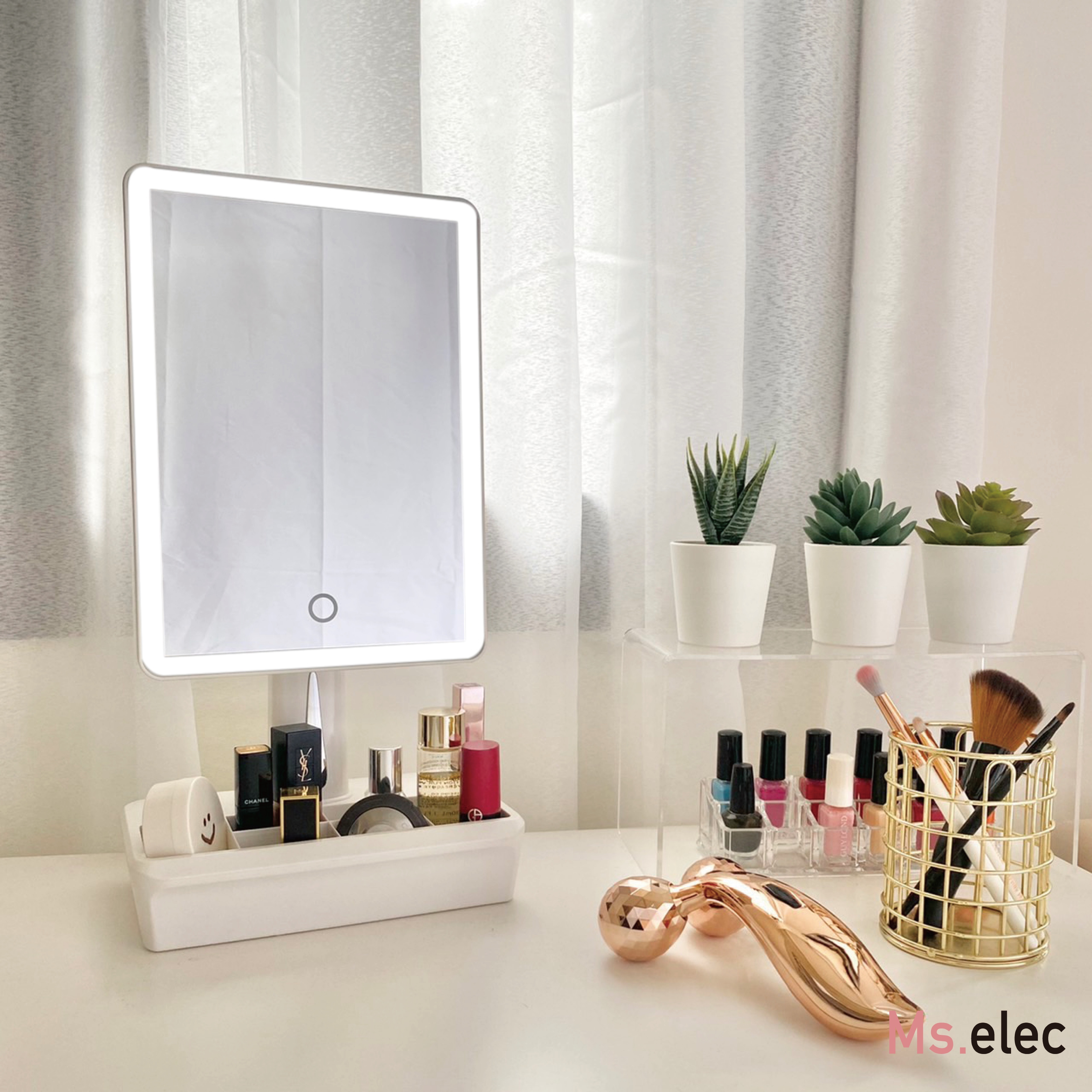 <慕月LED環燈化妝鏡/360°緊膚儀>