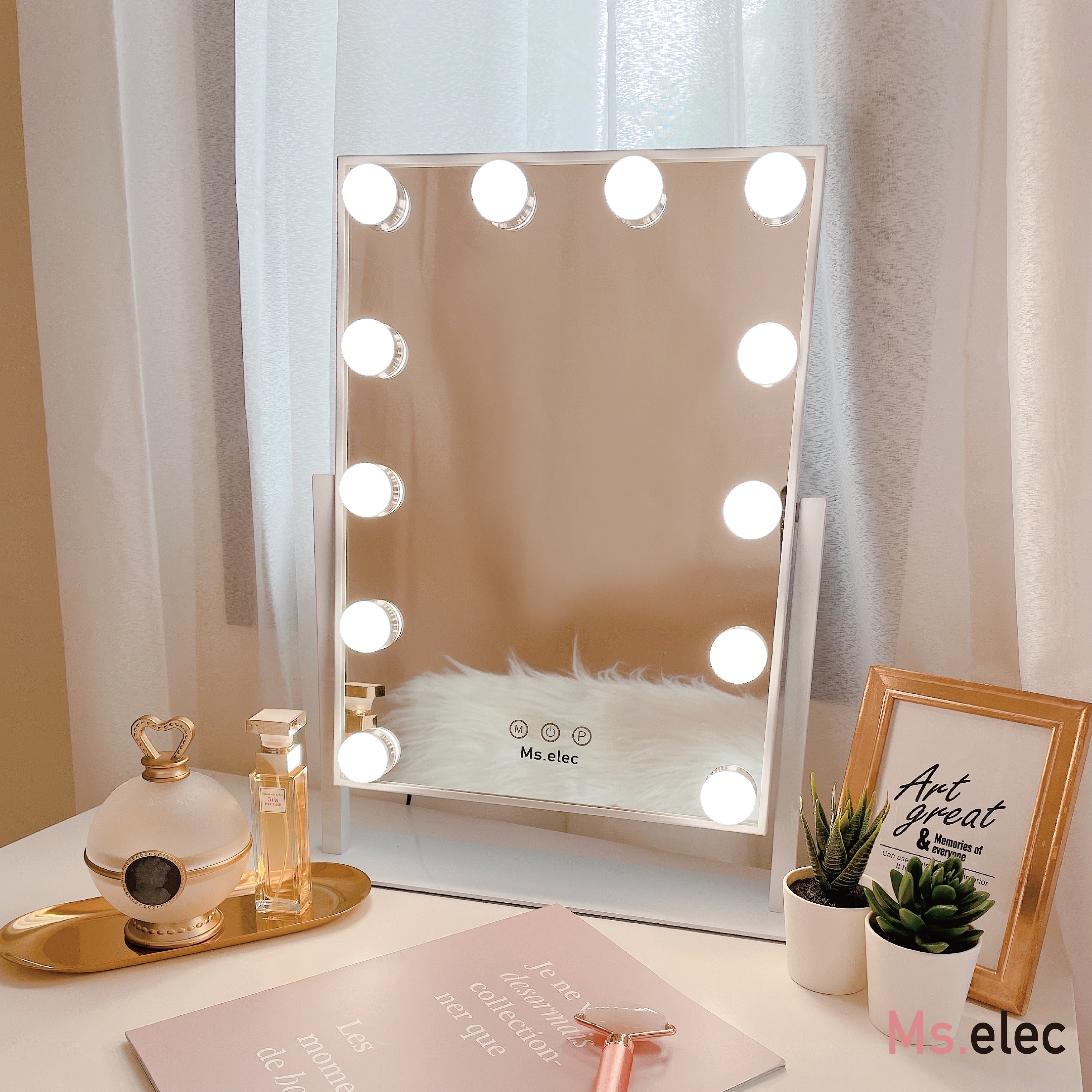 <璀璨巨星燈泡化妝鏡/40℃離子美容儀>
