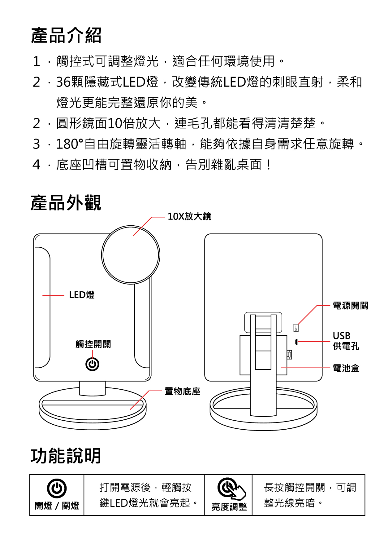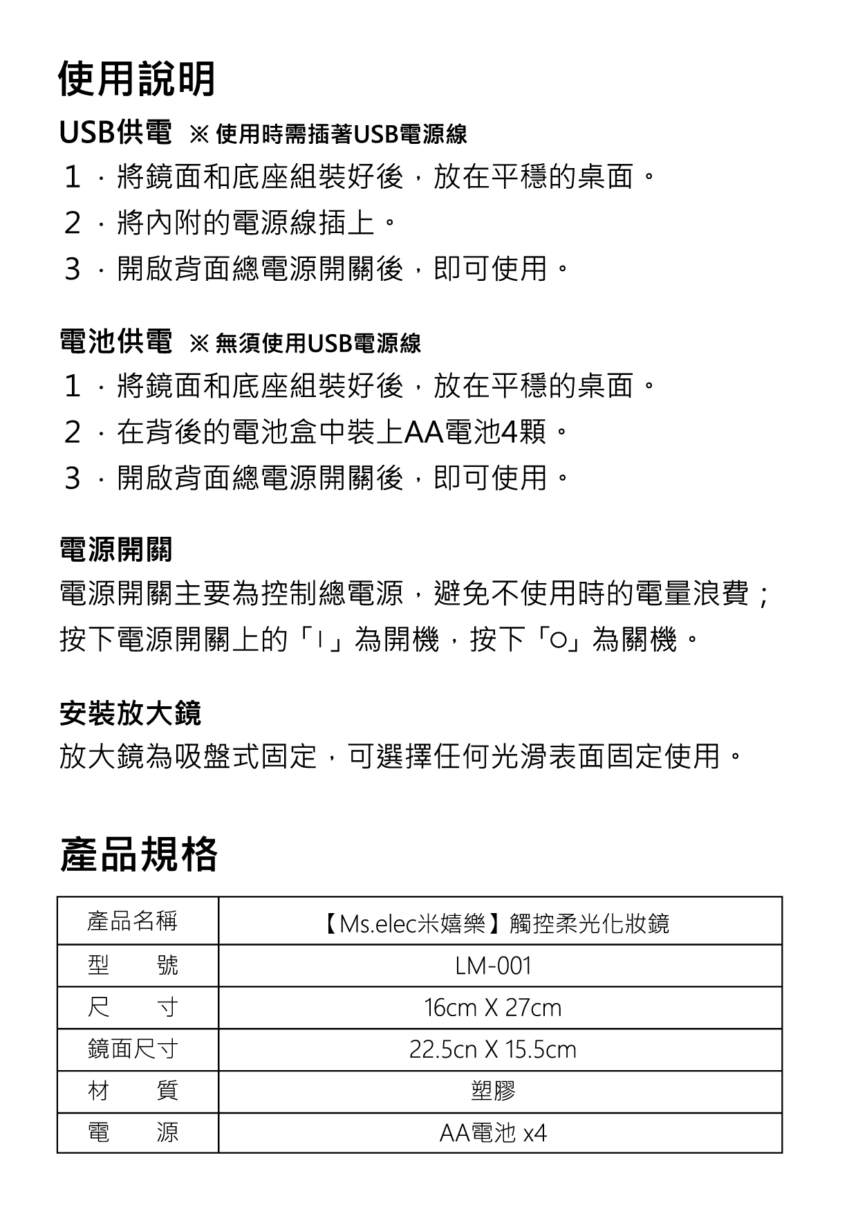 【使用說明書】觸控柔光化妝鏡 LM-001