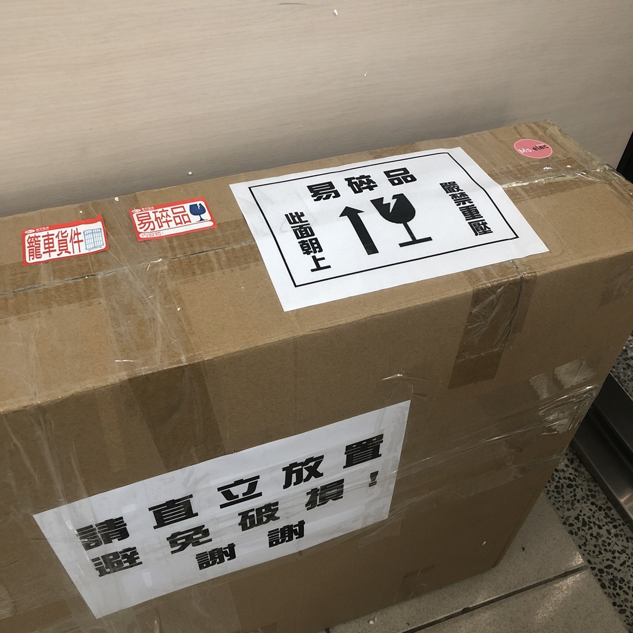 剛收到時,外箱上可以看到很多注意配送的警語