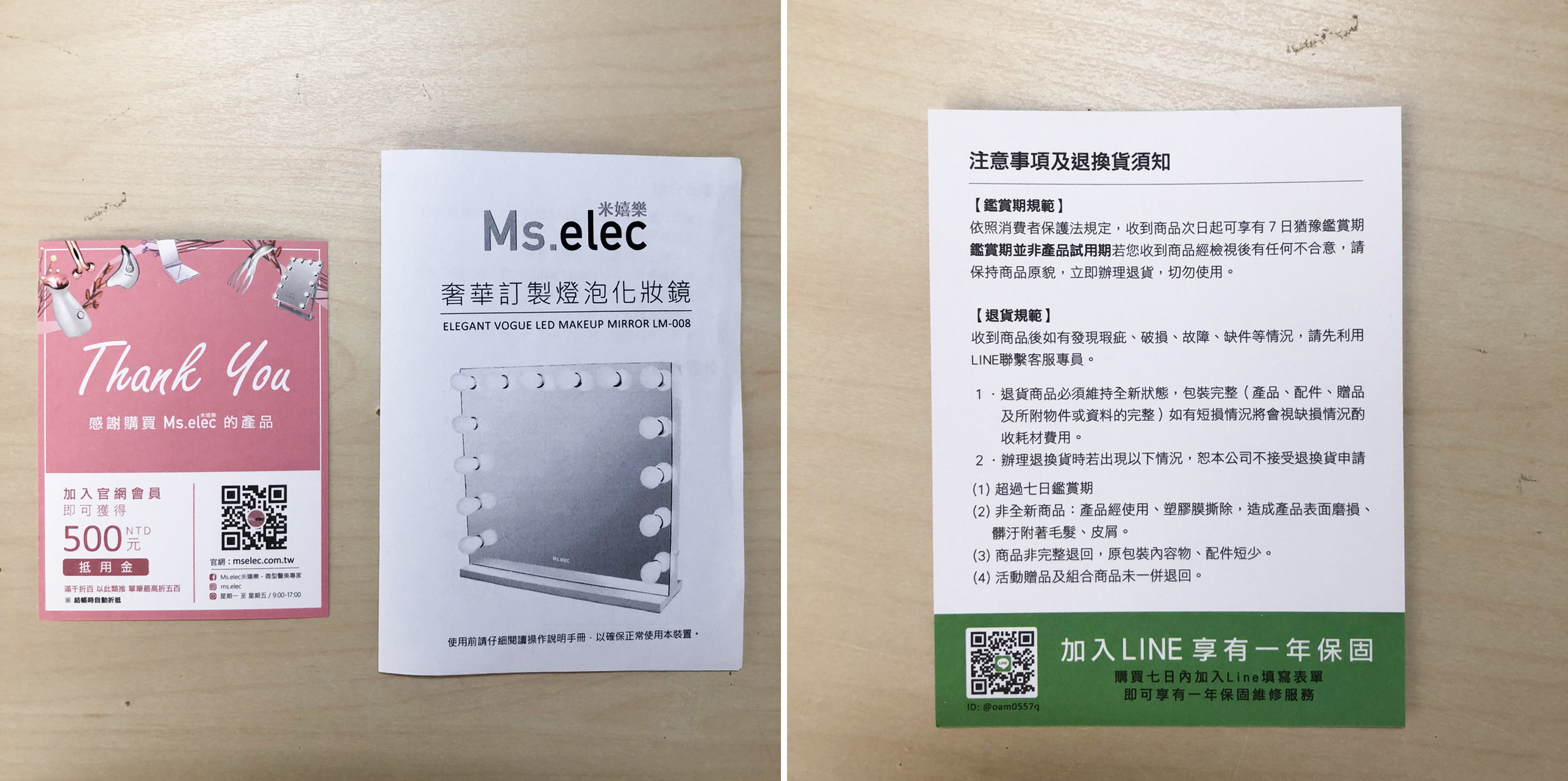 Ms.elec這款化妝鏡有提供一年的保固服務之外