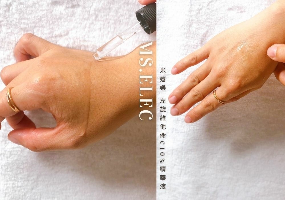 而這款「Ms.elec米嬉樂」左旋維他命C10%精華液產品不含酒精、香料、防腐劑,