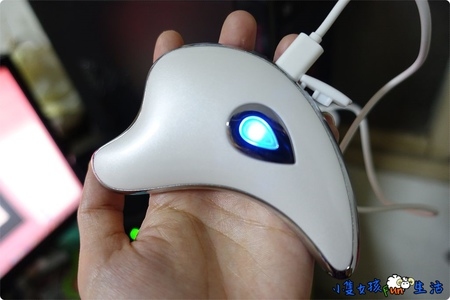 充電時藍燈會閃爍,充飽電藍燈會常亮