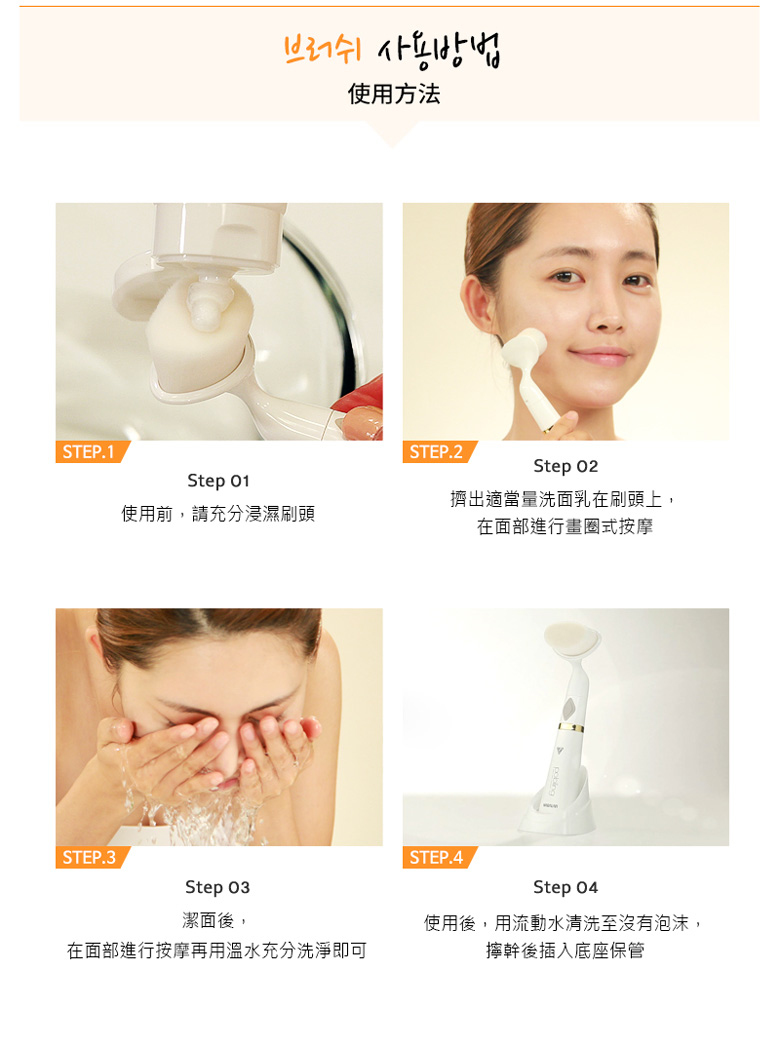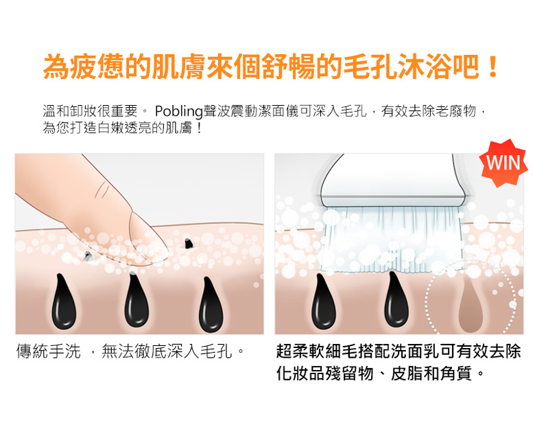 超柔軟洗臉機刷毛搭配洗面乳可有效去除殘妝、皮脂和角質