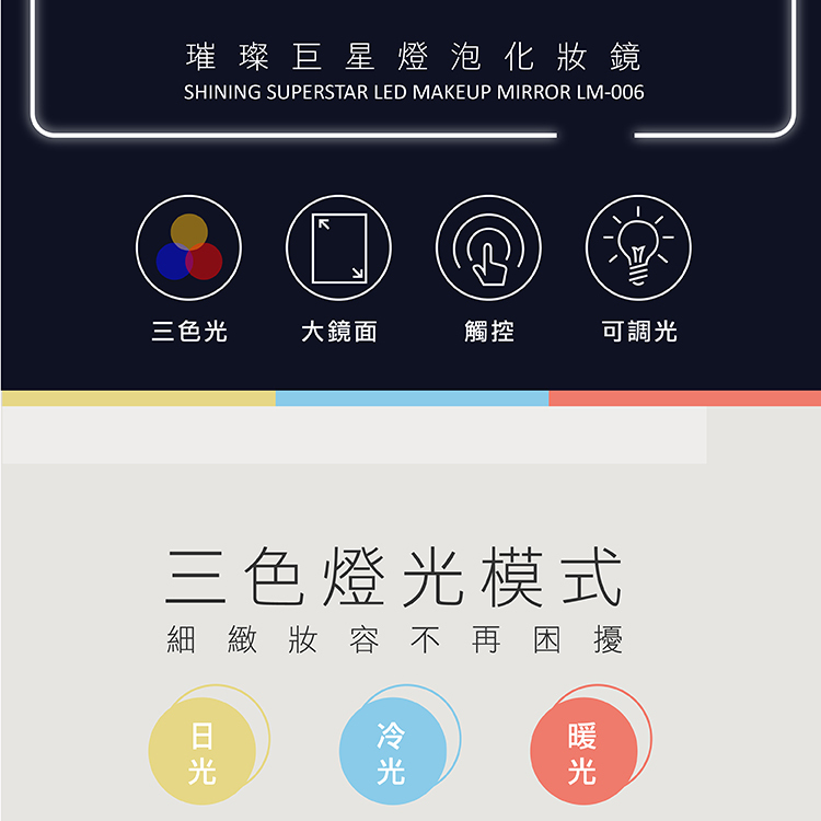 『 三色觸控調光,完美璀璨妝容 』